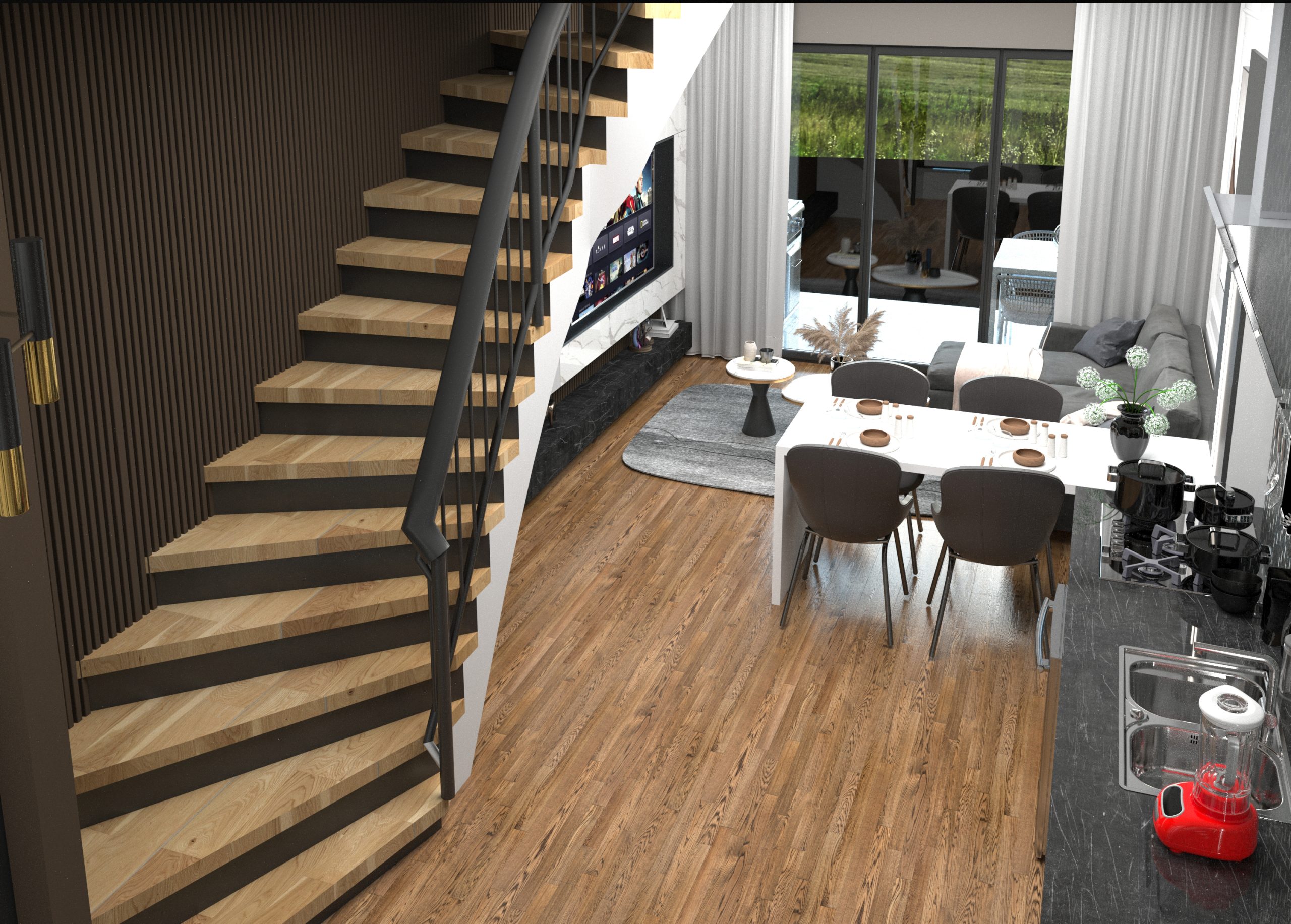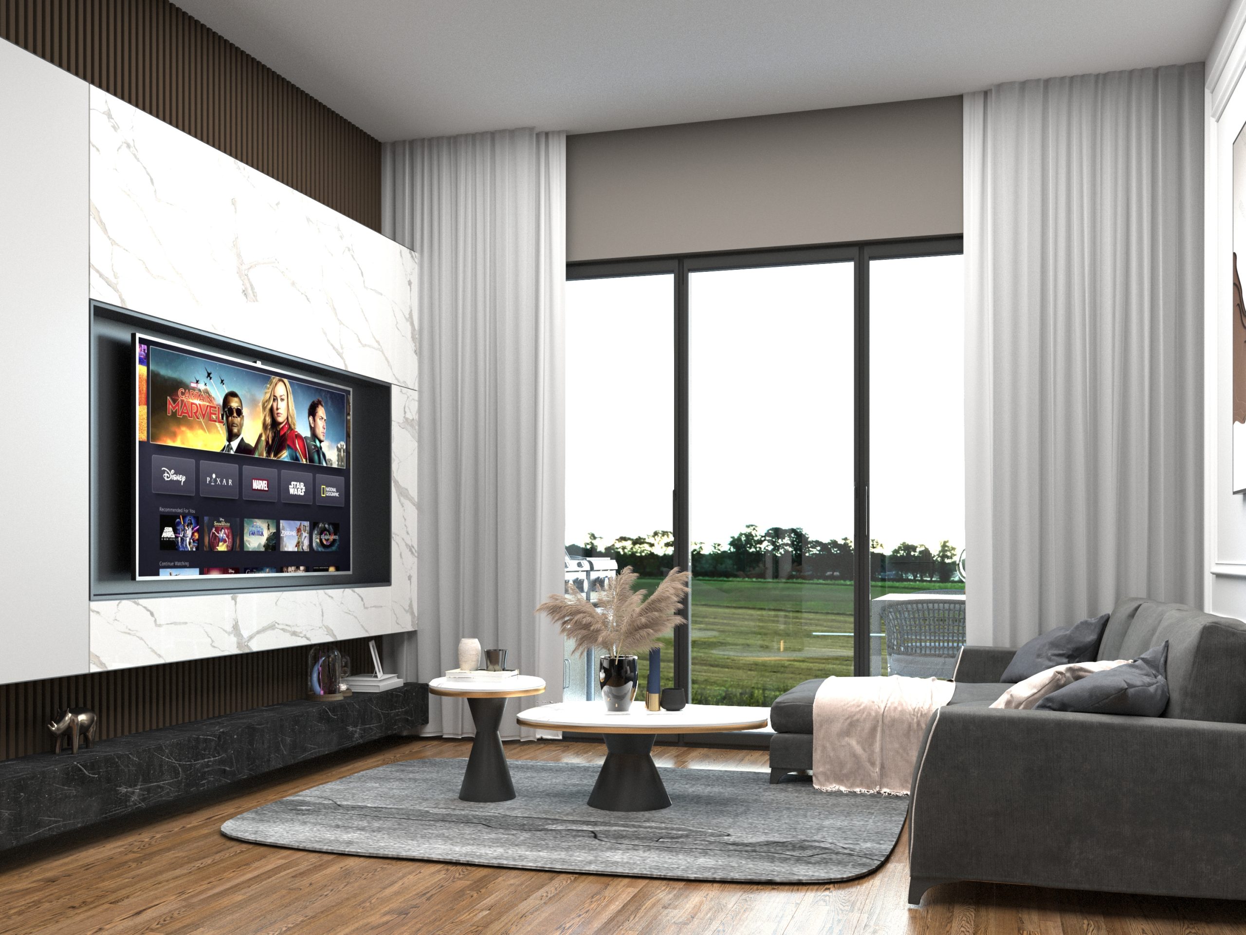 Salonlar : Amerikan mutfaklı salon alçı sıva, saten boyalıdır. Yerler laminat parke olup pencere ve balkon doğramaları yerden tavana sürgülü sistemli çift ısıcamlı antrasit Winsa markalıdır.
